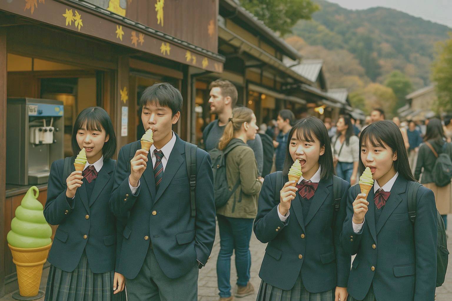 修学旅行生のグループ。みんながソフトクリームを手にしている中、一人だけ何も持っていない子がいました。ひょっとしたら、乳アレルギーの子かも知れないと思いました。