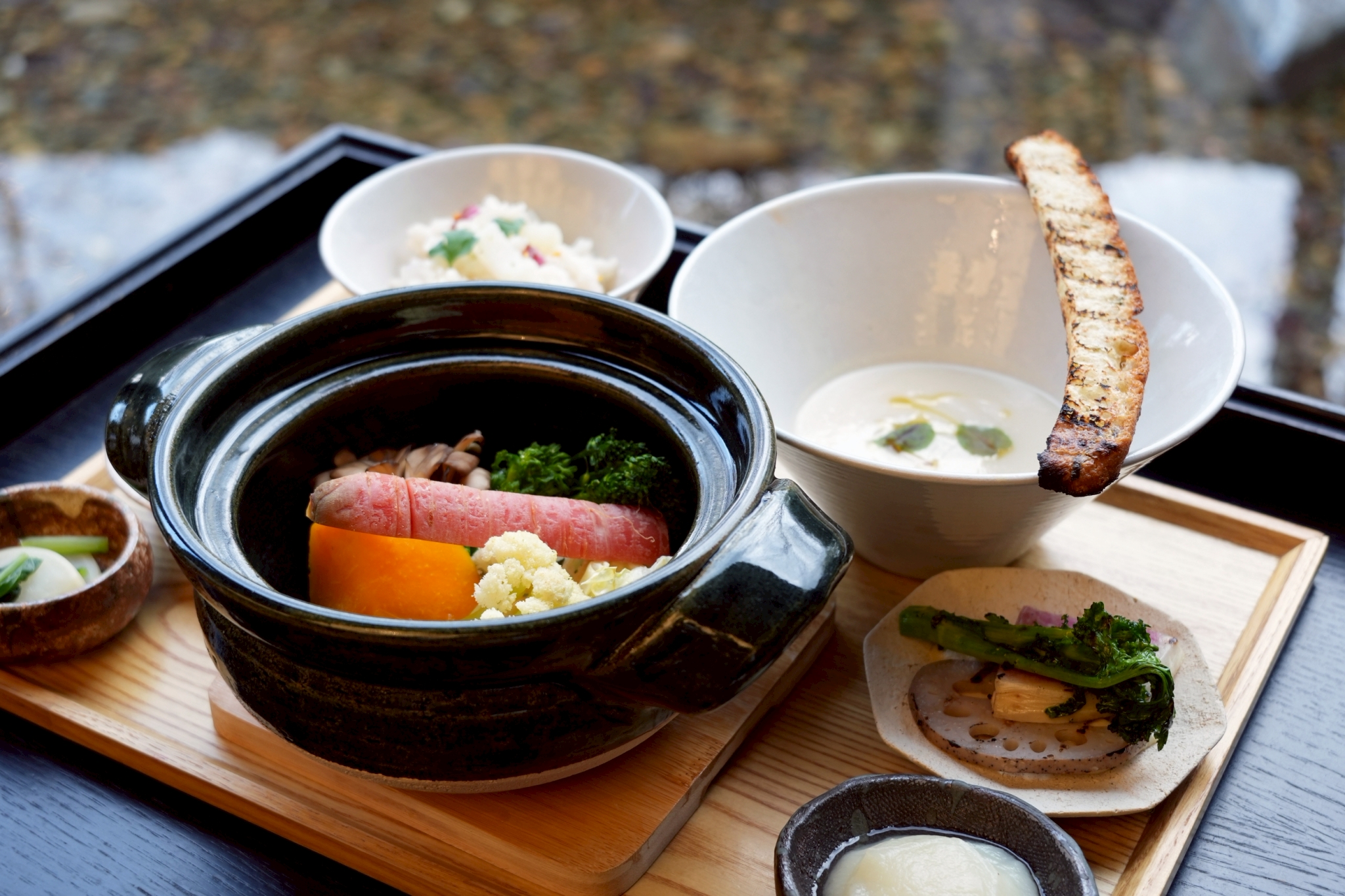 同ホテルでヴィーガンも楽しめるコースが本格的に始まったのは、留目さんがシェフとして加わってからだそう。自然豊かな京都の土地で育った野菜を、ゲストに楽しんでもらいたいという思いから生まれました。